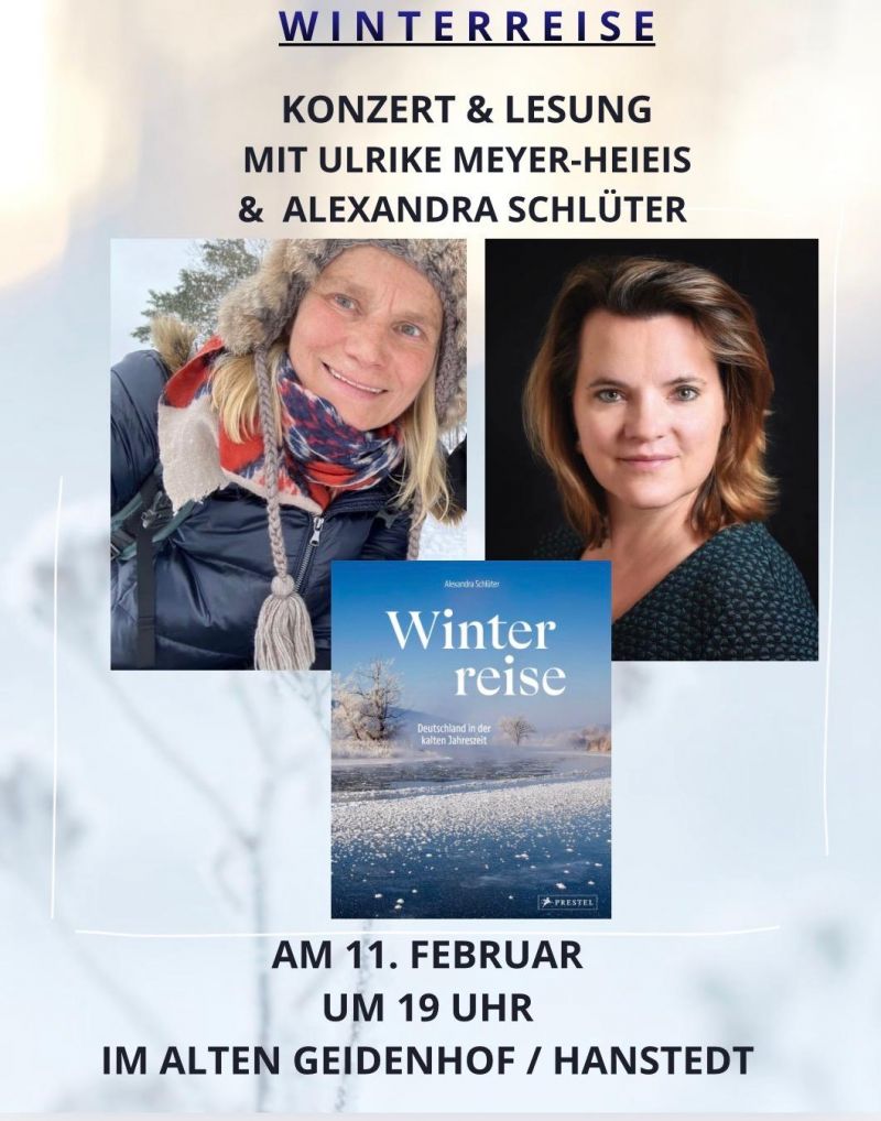 Ich freu mich auf einen besonderen Winterabend: Ulrike Meyer-Heieis singt aus Schuberts „Winterreise“ und ich lese aus meiner „Winterreise“.