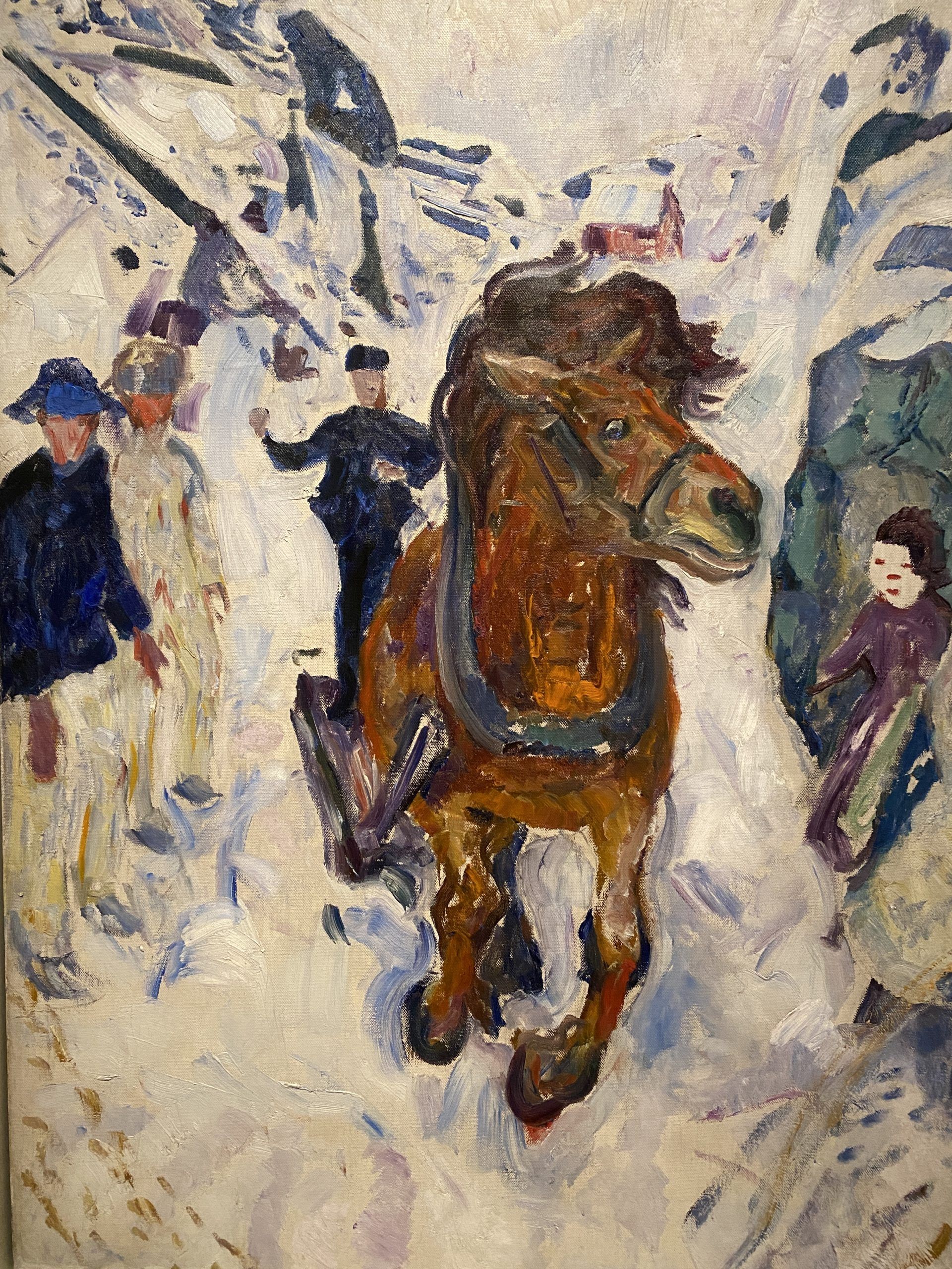 Dieses Bild ist von Edvard Munch. Es hängt im Munch Museum in Oslo, dort habe ich es letzten Sommer gesehen. Ein Pferd geht durch und galoppie